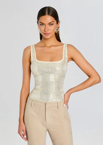 Elevate every evening look with the RETROFÊTE Marzia Embellished Top. Designed with a flattering square neckline and chic scoop back, this luxe tank silhouette is covered in shimmering embellishments that catch the light from every angle. Feminine, glamorous, and beautifully structured, it delivers the perfect balance of sparkle and sophistication—ideal for holiday parties, nights out, celebrations, and elevated occasions. Pair it with sleek trousers, leather pants, or a statement skirt to instantly turn heads.