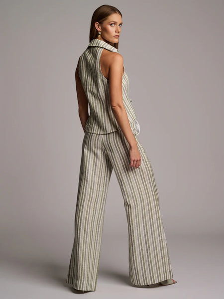 The pant falls into a deliberate floor-length hemline, creating a sophisticated drape that pairs beautifully with both heels and flats. A structured yet relaxed wide-leg cut enhances movement while maintaining a clean, tailored finish. Whether styled with a crisp blouse, matching linen top, or elevated basics, the Capri Pant delivers timeless versatility with modern ease.