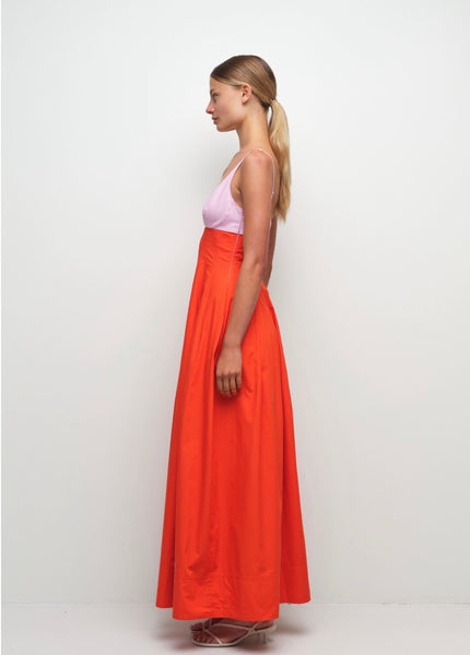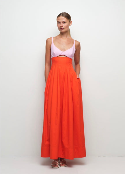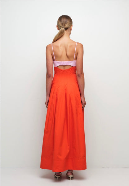 Make a statement in the SIMKHAI Maddy Cotton Maxi Dress, a striking color-block silhouette designed for effortless warm-weather style. Rendered in a vibrant Lobster Multi palette, this maxi dress blends bold color with clean lines for a look that feels both modern and timeless. Crafted from a breathable cotton-blend with a soft cotton lining, it offers lightweight comfort while maintaining beautiful structure and flow.